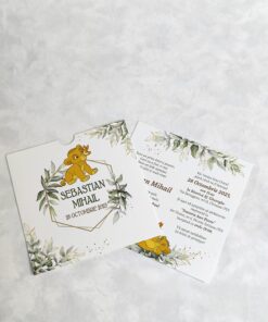 Baby Leon este o invitatie de botez plina de energie si farmec, creata pentru a transforma primul mare eveniment al micutului tau intr-o adevarata aventura in jungla.